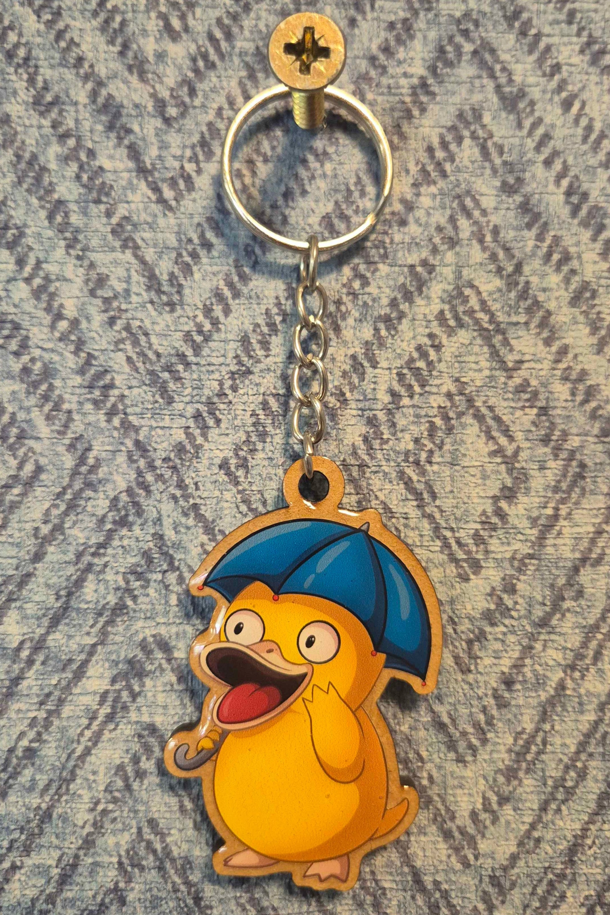 This charming wooden keyring features a resin print of my original artwork β a very content little duck gazing off into the distance, totally unbothered by the rain thanks to his trusty blue umbrella π