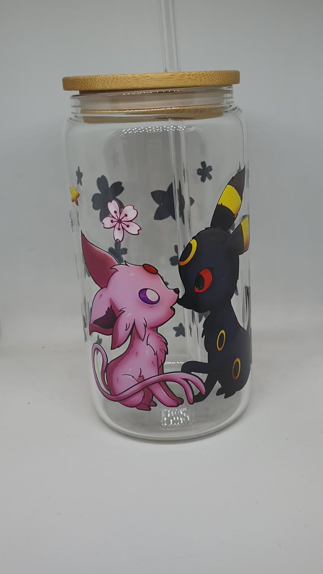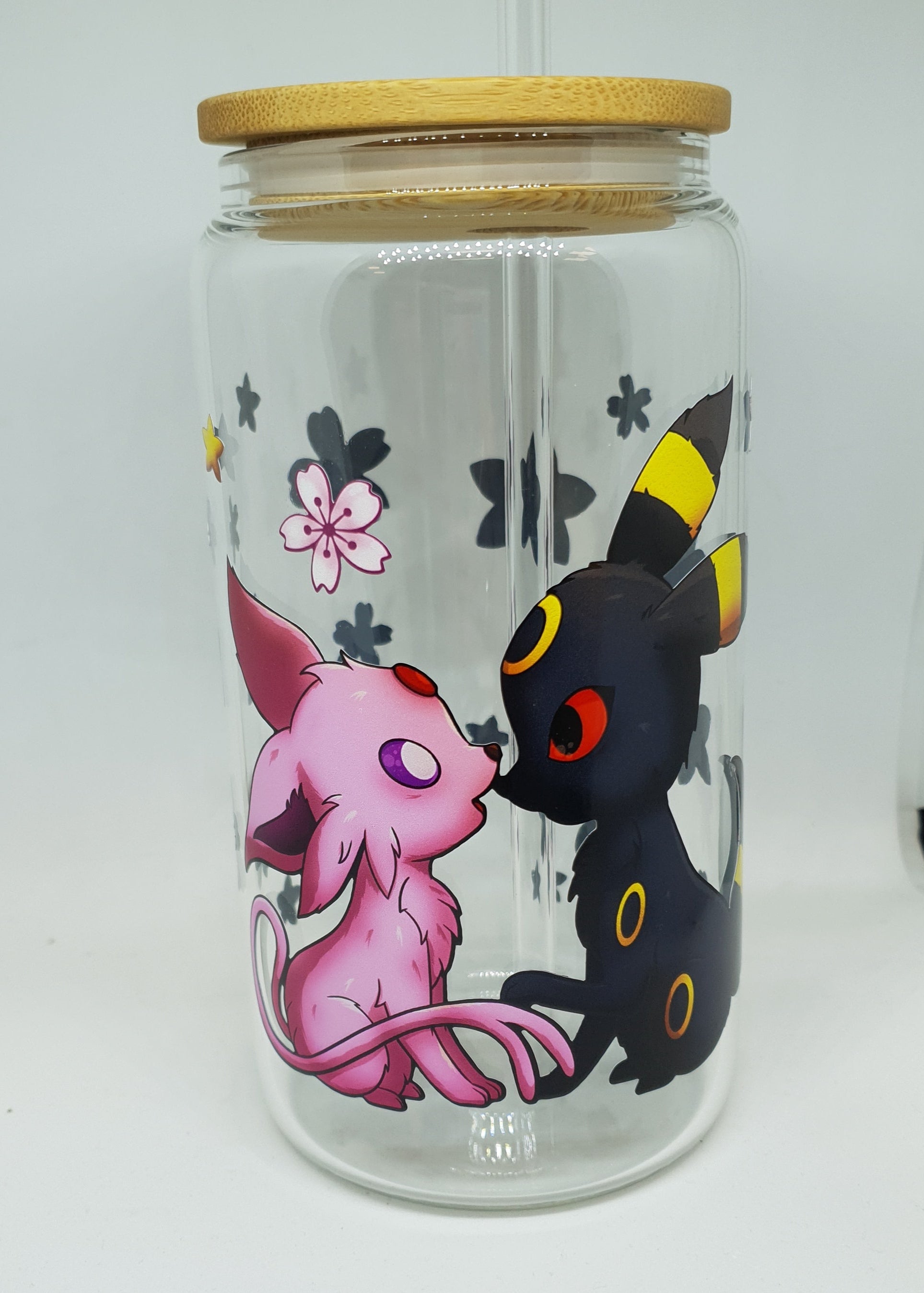 Celebrate a quiet moment between two celestial companions. This hand-drawn 16oz glass tumbler features a pair of mystical creatures meeting under a starry sky. They reach toward each other gently, oneβs paw resting on the otherβs tail, creating a tender connection right at the heart of the design.