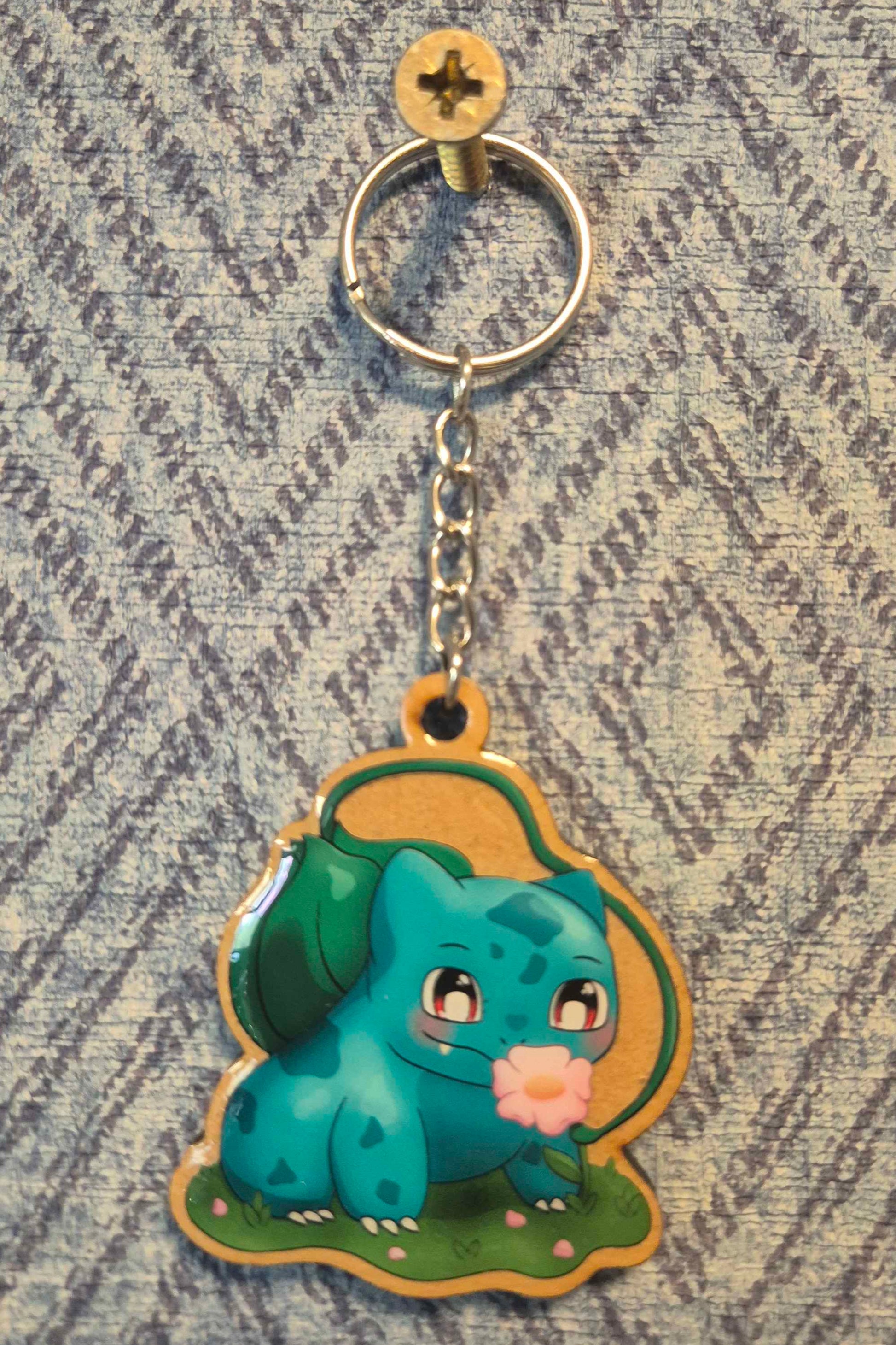 This gentle and wholesome wooden keyring features a resin print of my original artwork โ a small leafy creature standing on a patch of grass, using one of its vines to hold up a pink flower and give it a good appreciative sniff ๐๐ธ