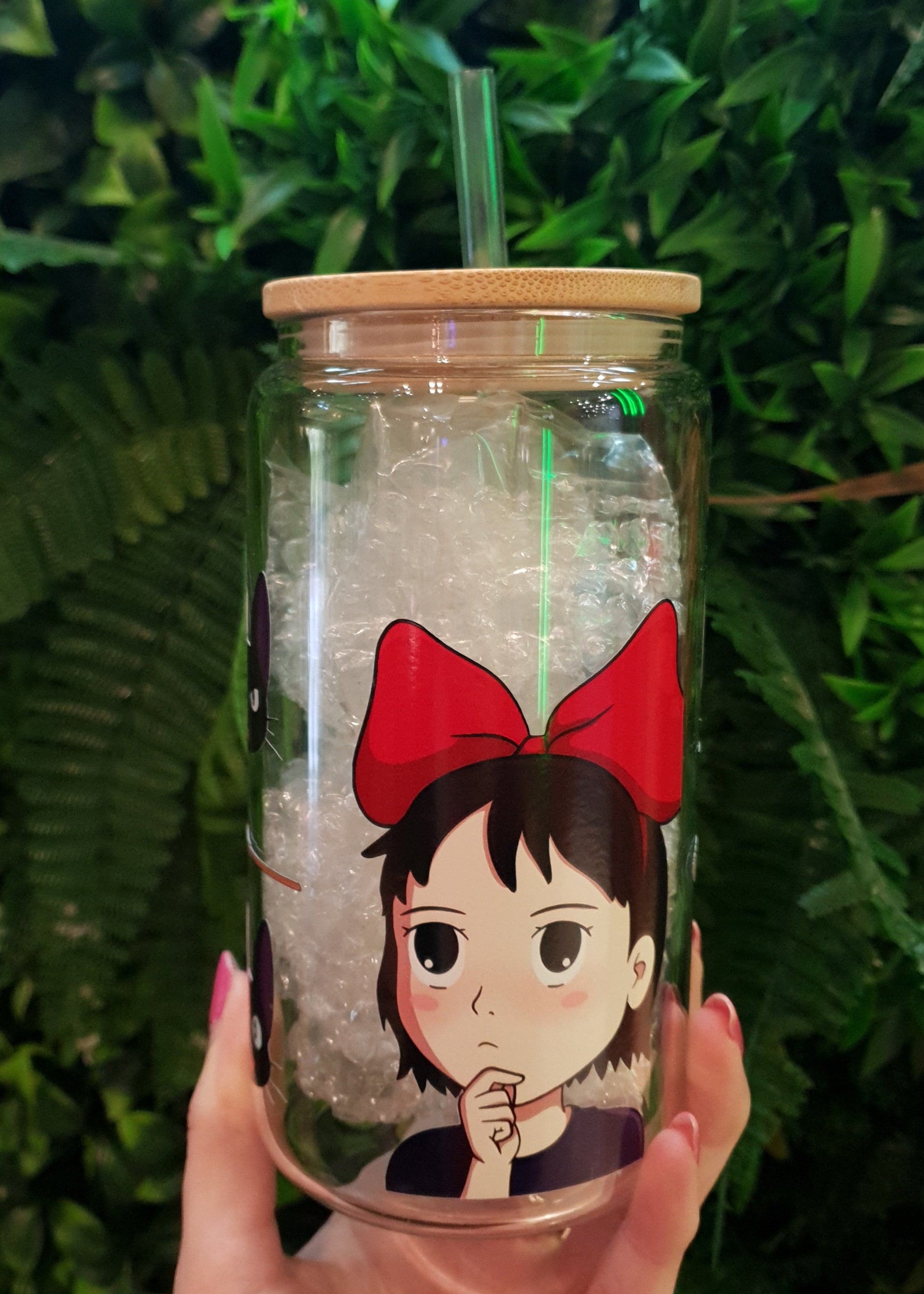 For days when you're trying your best, but the universe has other plans. This hand-drawn 16oz glass tumbler features a determined young witch with a big red bow, caught mid-moment with a very thoughtful expression.