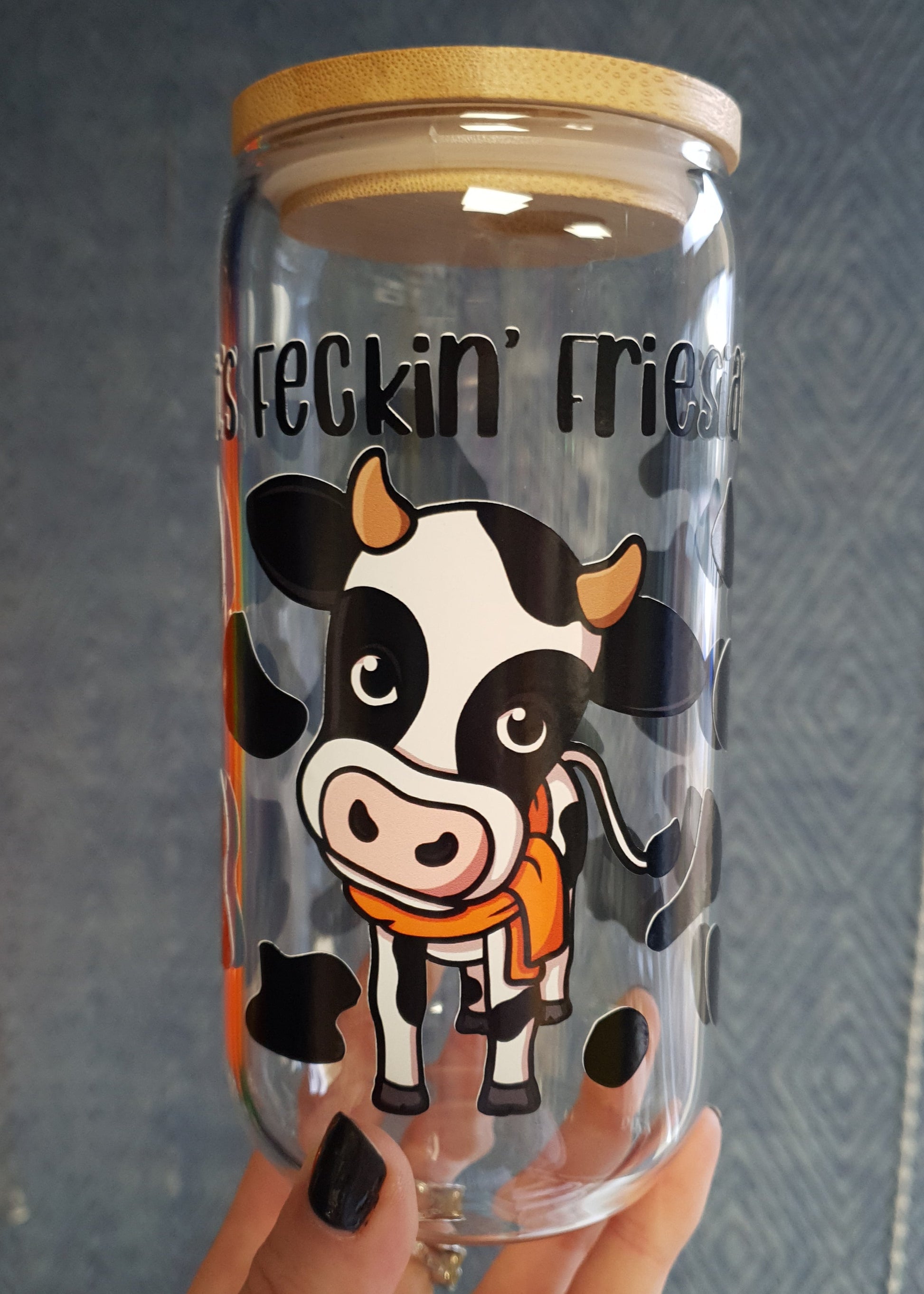 🐄 It’s Feckin’ Friesian – 16oz Glass Tumbler