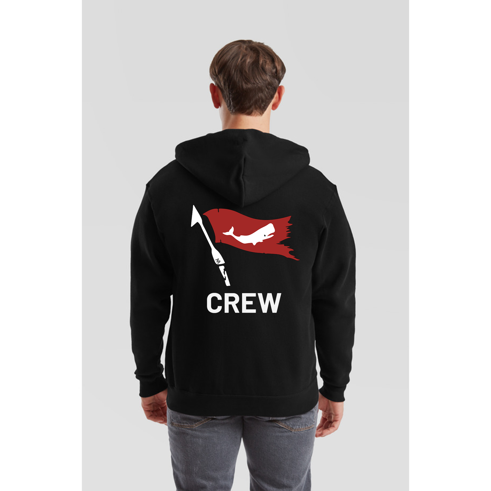 This full-zip hoodie is a practical upgrade to the classic crew hoodie—featuring the Captain Paul Watson Foundation logo on the front and the crew emblem on the back.