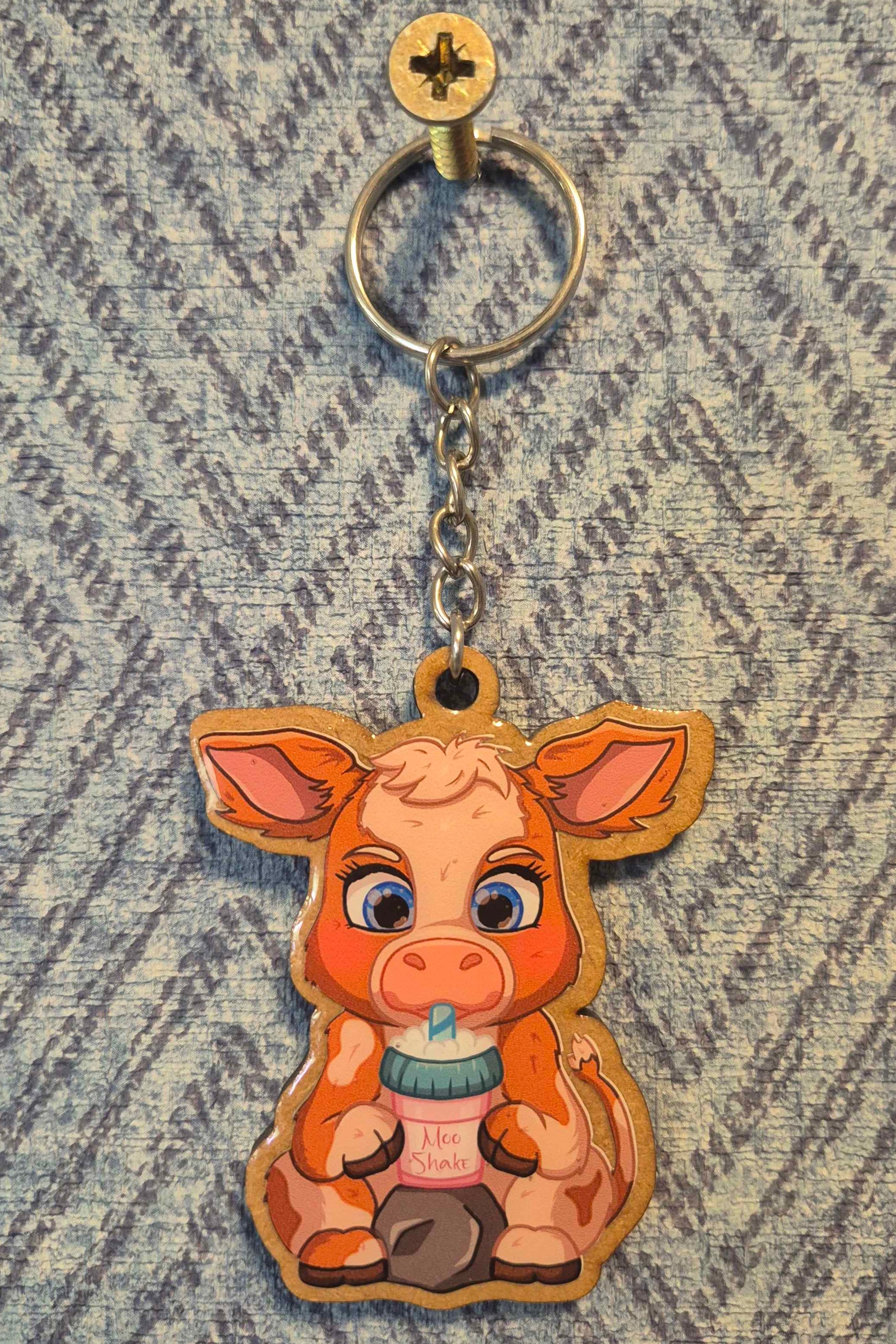 This wooden keyring features a resin print of my hand-drawn artwork, with Milly the cow sitting sweetly and sipping a mooshake through a straw. Yes, she’s that cute — and no, she’s not sharing.