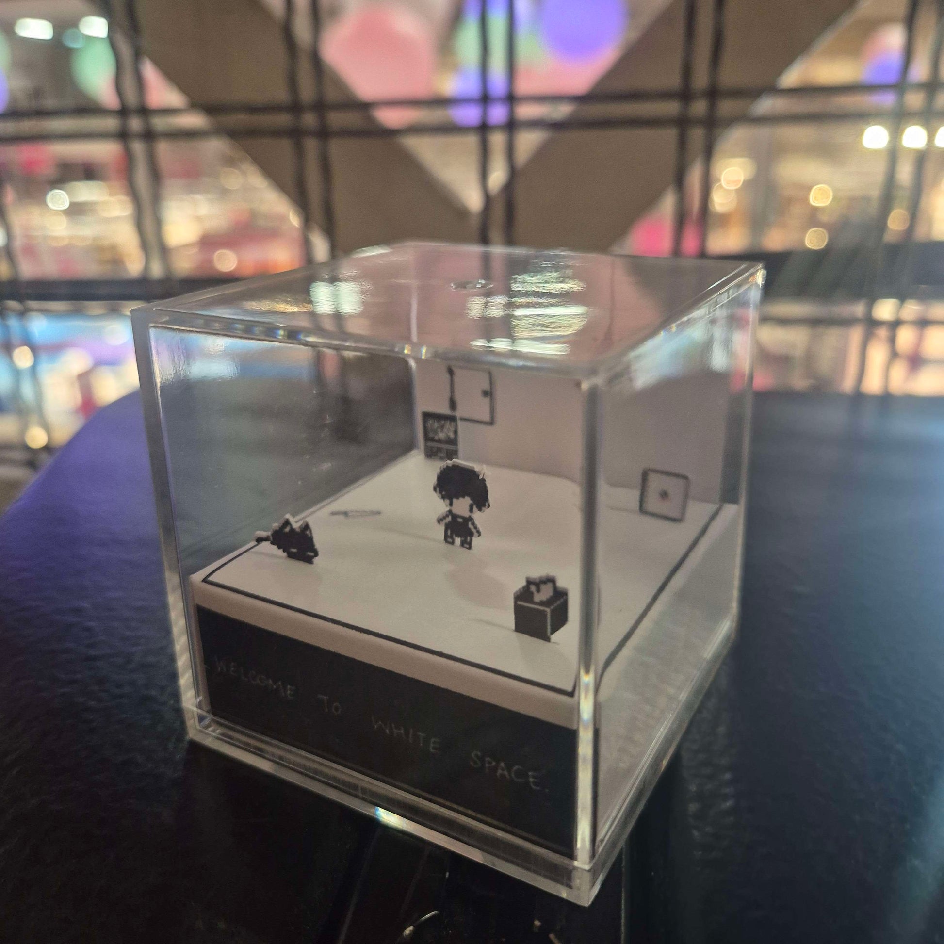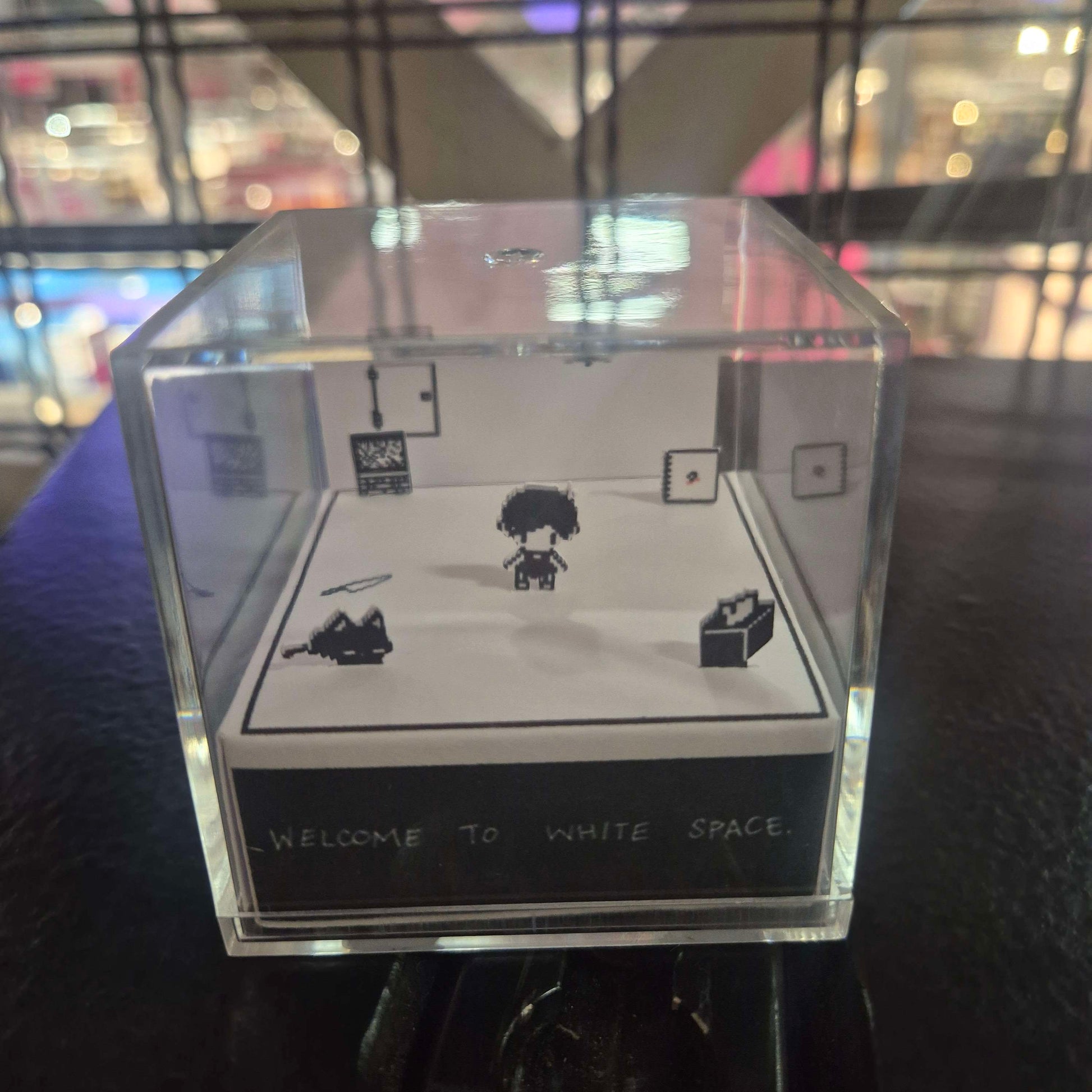 This 6.5x6.5cm mini diorama captures the eerie stillness of a familiar space—a blank room, void of color, yet full of emotion.