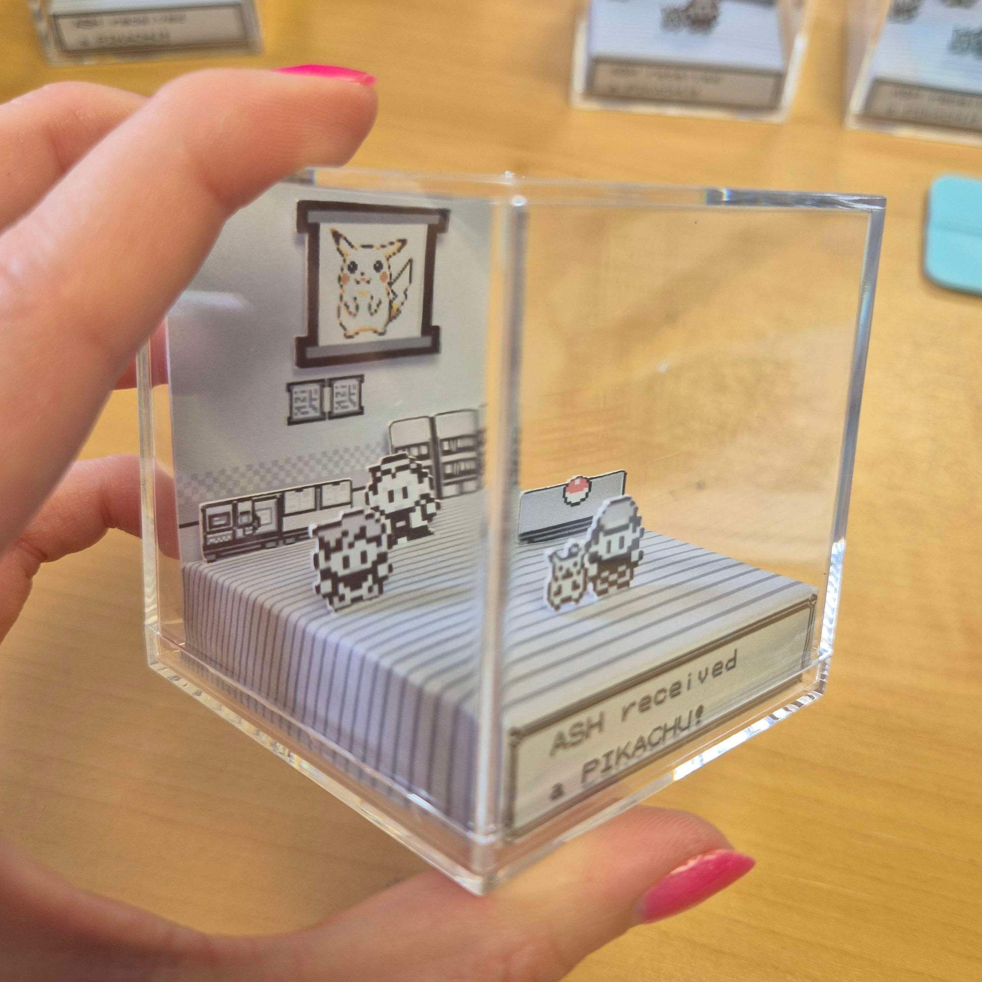 This 6.5cm sq mini diorama recreates a familiar pixel-perfect lab scene: the one true companion waits on their pedestal, ready to join you on your very first adventure.