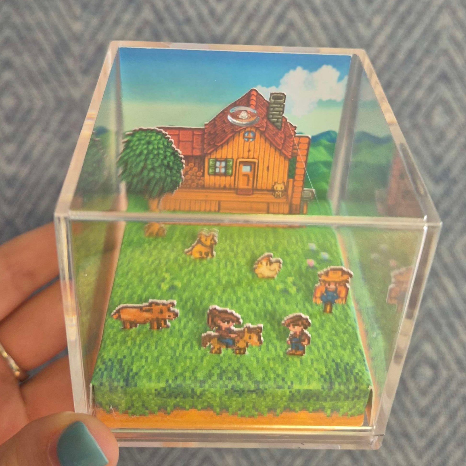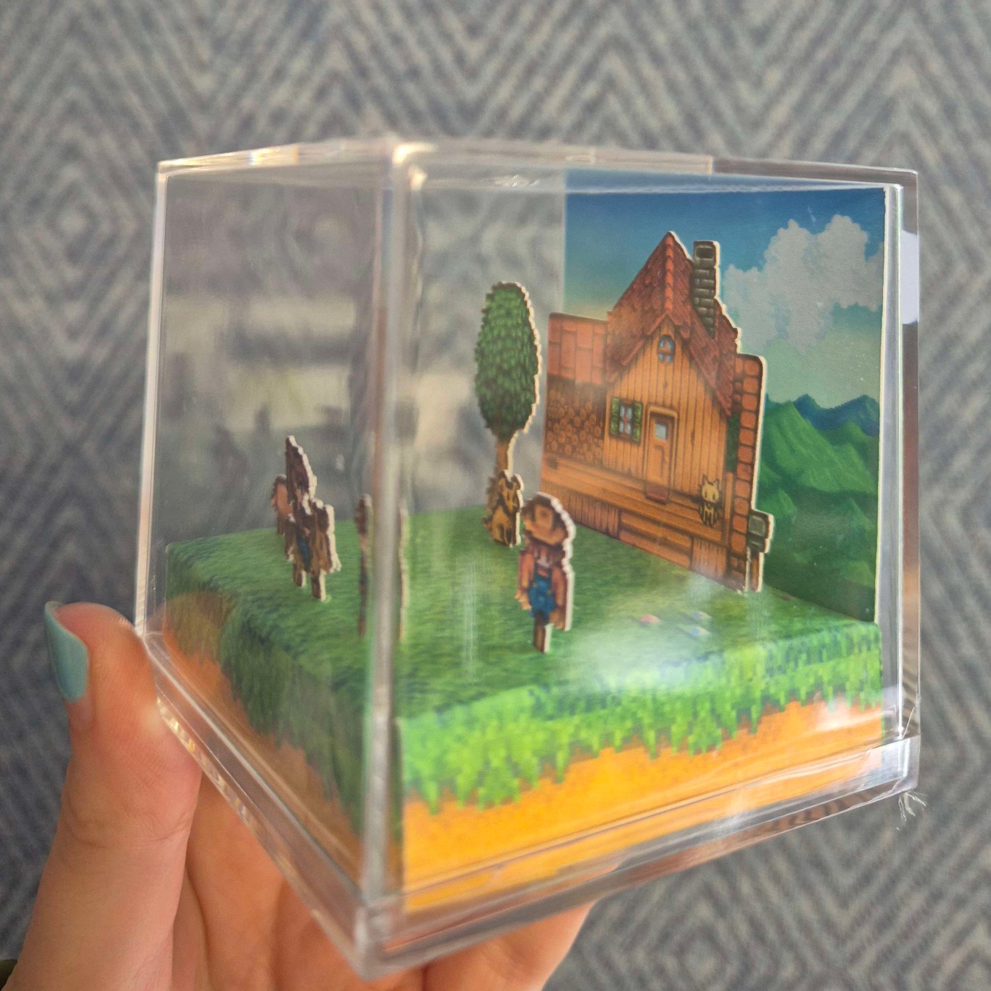 This 6.5cm sq mini diorama was handcrafted with layered papercraft in a clear display box.